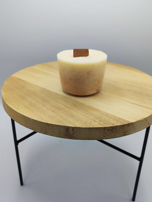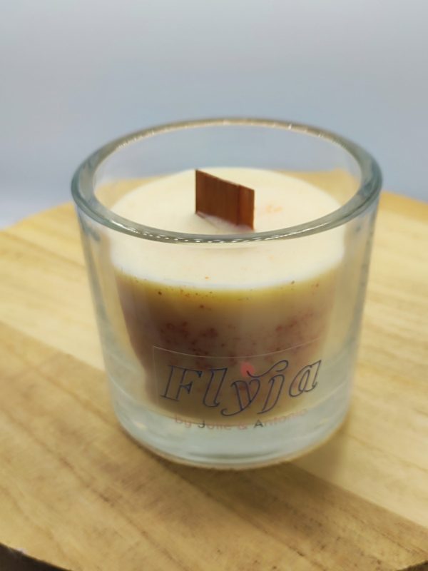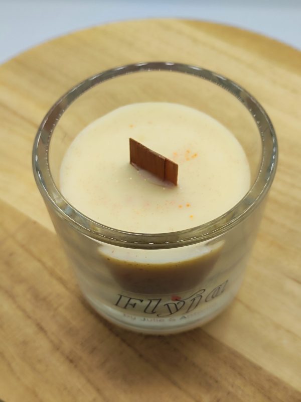 Composée de cire de colza, de parfum incorporé dans la masse et d’une mèche en bois.